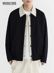 WOOG2005抗皱高级感撞色翻领夹克男士2025秋季新款百搭潮休闲外套