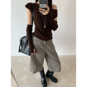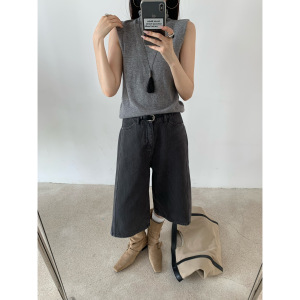 The Leaf-分裤新款牛仔裤宽松休闲直筒阔腿裤牛仔裤(配腰带)25517