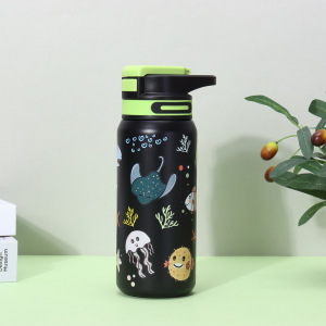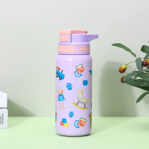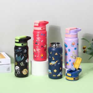 新款儿童印花水杯316不锈钢保温杯大容量男女直饮水杯便携吸管杯