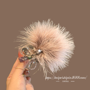 粉色鸵鸟毛蓬松高级感仙气发卡水钻编织串珠精灵头饰毛球2025新款