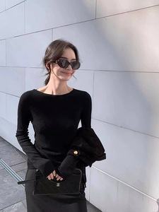25秋冬新款精仿羊毛薄款针织衫打底衫女套头显瘦上衣内搭圆领修身