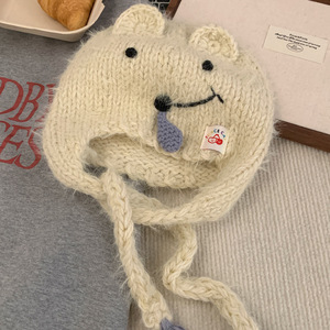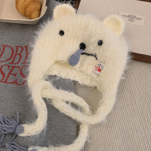 可爱卡通考拉耳朵鼻涕包头帽女秋冬护耳保暖显脸小针织毛线帽子潮