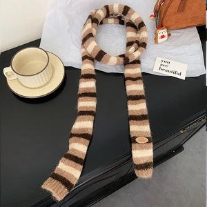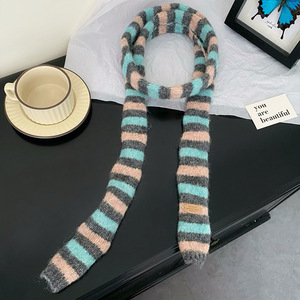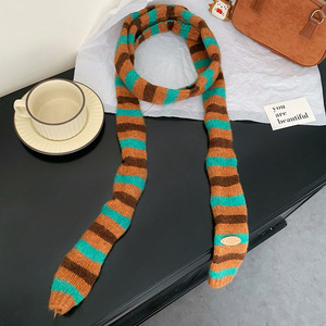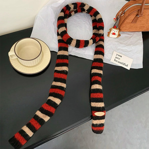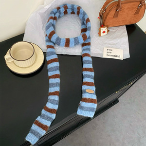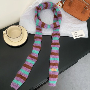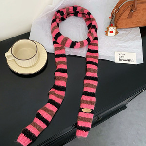 多巴胺腊肠围巾女条纹针织毛线拼接网红千禧辣妹围脖保暖百搭批发