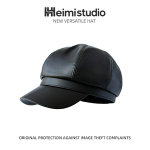 批发25年至早秋新款女士帽子贝雷帽纯色皮质PU帽子弯檐复古八角帽
