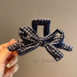 藏青格子爱心抓夹