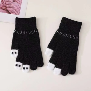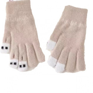 新款简约轻复古保暖分指漏指手套柔软加绒防风御寒触屏开孔手套