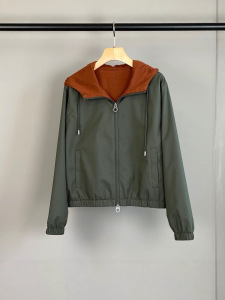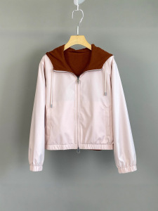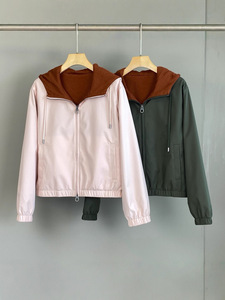 意奢客供面料!双面穿短款立领连帽飞行员风衣夹克外套宽松休闲