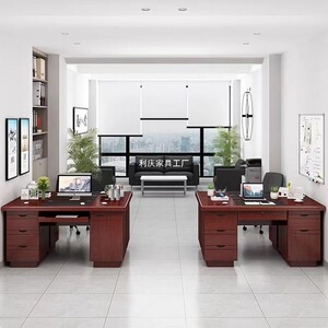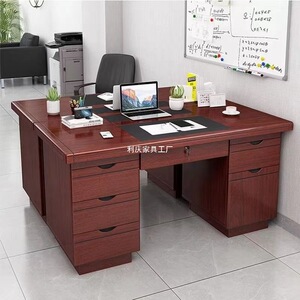 油漆办公桌财务电脑桌双面实木贴皮写字台带锁带抽屉职员桌椅组合