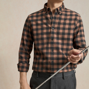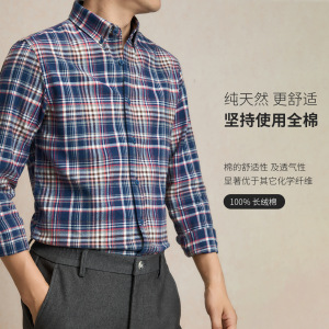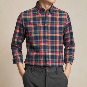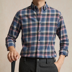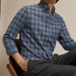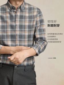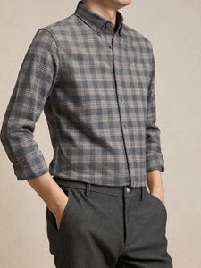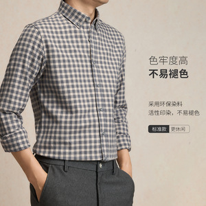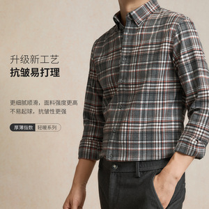 2025新款纯棉磨毛格纹衬衫男士长袖中年商务休闲春秋男式格子衬衣