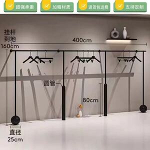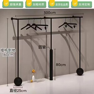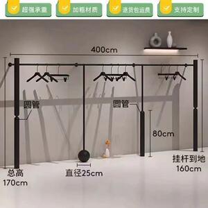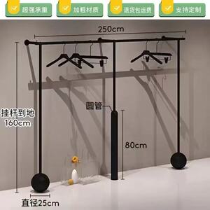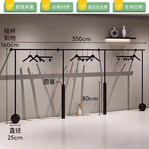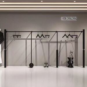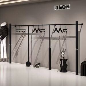 简约男女服装展示架哑光黑色上墙挂衣杆落地陈列架童装店专用货架
