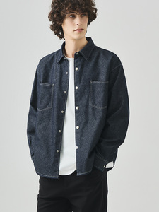 APO男装|跨境男士长袖衬衫秋季潮牌宽松休闲翻领牛仔衬衣外套上衣