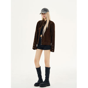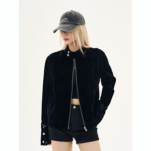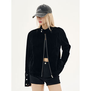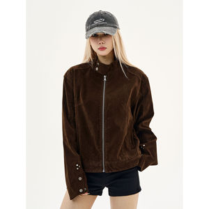 春秋季美式cleanfit摩登街头复古绒皮工艺立领哈灵顿夹克外套男女