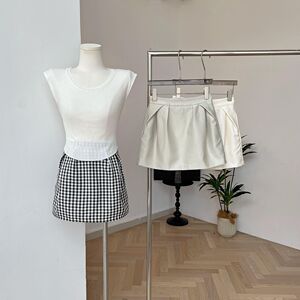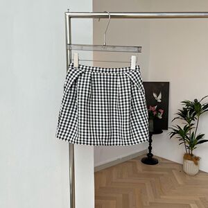 韩国新款经典系黑白格短款半身裙女夏季设计感百搭休闲花苞短裙子