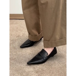 羊皮复古尖头气质小猫跟单鞋浅口职业通勤小皮鞋女法式粗跟乐福鞋
