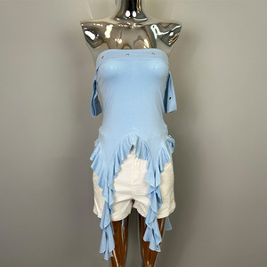 韩国东大门新品 高级感御姐风纯欲 女人味露肩黑色抹胸上衣