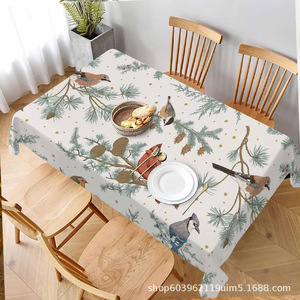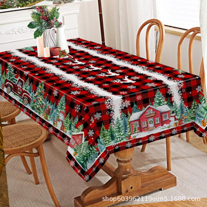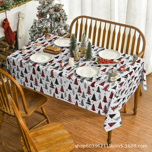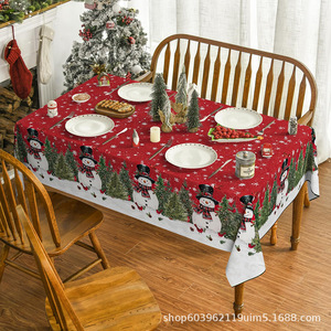 亚马逊圣诞节防水桃皮绒桌布装饰餐桌圣诞树雪人麋鹿餐厅派对盖巾