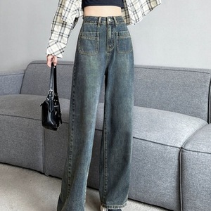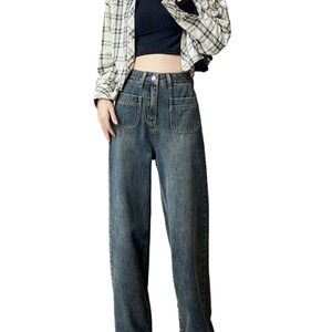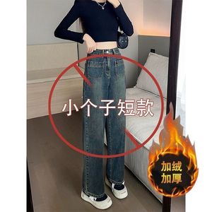 复古蓝牛仔裤女150小个子冬季显高搭配高腰显瘦直筒裤窄版阔腿裤