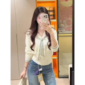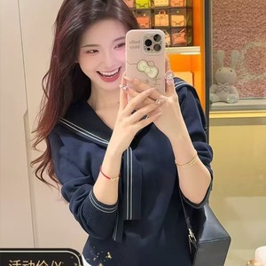 早秋新款毛衣上衣小众潮流海军领披肩修身短款内搭针织衫百搭款女