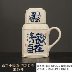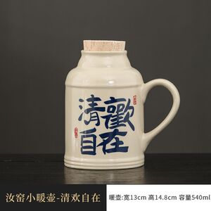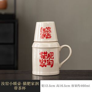 汝窑小暖壶闷茶壶带茶杯陶瓷中式大容量带盖暖瓶便携办公杯子家用