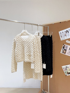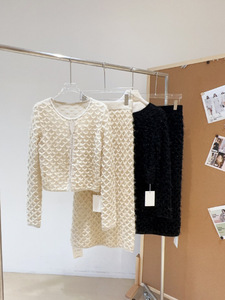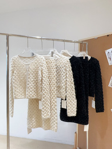 南油高品原创女装新款法式重工菱格开衫羊毛手感软糯舒适圆领上衣