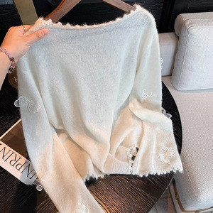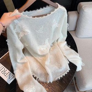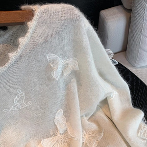 法式白色慵懒风立体蝴蝶 毛衣女秋季新款气质温柔软糯针织上衣