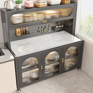 岩板厨房置物架落地多层家用餐边多功能靠墙一体储物收纳碗橱柜子