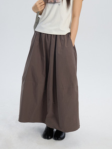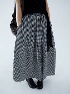 【欧凡】韩系简约细格纹高腰空气裙半身裙女25年秋季宽松长裙3138