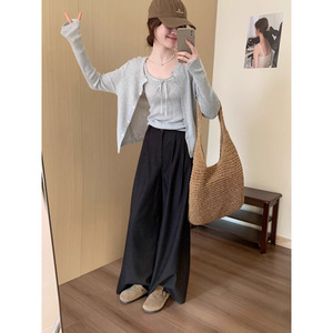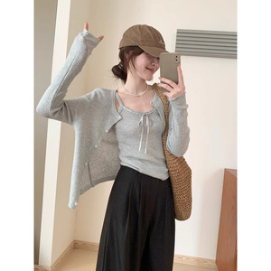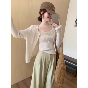 KANING针织背心系带两件套2025秋季新款甜美气质修身显针织开衫女