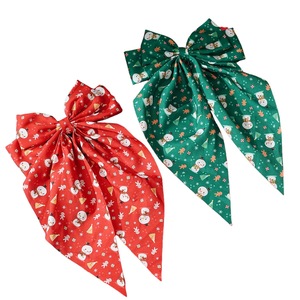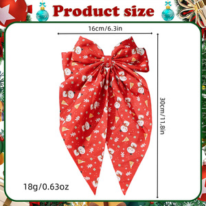 跨境新款圣诞节发夹飘带蝴蝶结弹簧夹雪人图案节日氛围感发饰批发