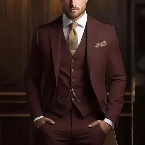 高级感男士西装三件套跨境亚马逊婚礼宴会新郎西服绅士气质速卖通