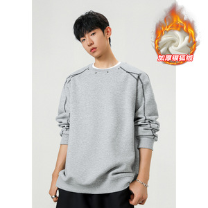 华棉高克重400g解构铆钉大码长袖卫衣男W5413特P35 W5413J加绒P40