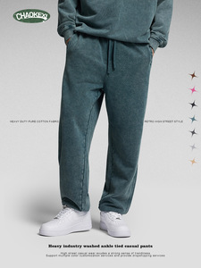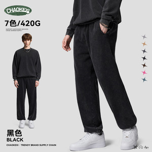 CKX男装秋冬新品街头潮牌蜡染做旧宽松长裤男洗水复古男卫裤