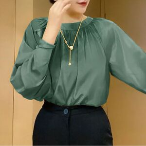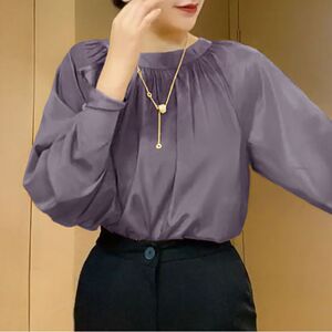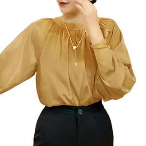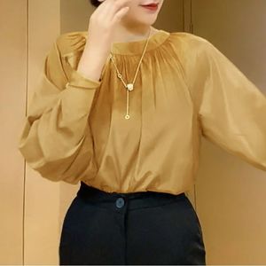 春秋女新款洋气衬衫女长袖上衣单穿圆领褶皱套头简约衬衣气质百搭