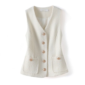 9216新款女秋冬季小香风马甲短款无袖背心上衣短款粗花呢坎肩马夹
