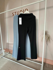 Alo新款蓝色拖地微喇裤子小个子垂坠感高腰显瘦窄版休闲裤女春秋