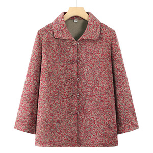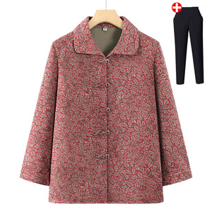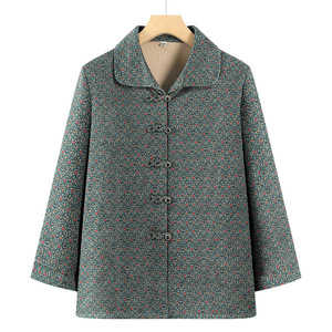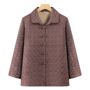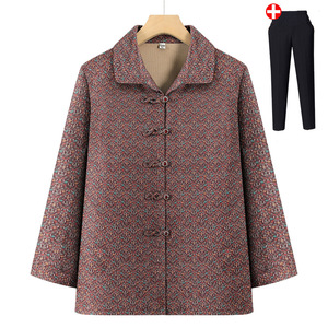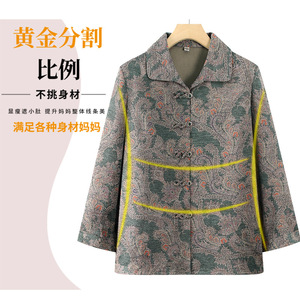 奶奶秋装薄款外套女中老年人秋季长袖衬衫60岁70妈妈复古翻领上衣