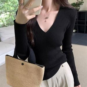 别致修身打底衫女内搭法式秋冬新款黑色低领高级感长袖针织衫上衣