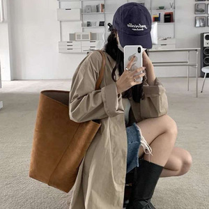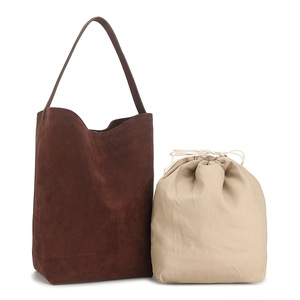 Row水桶包柔软麂皮牛皮水桶磨砂皮大容量通勤单肩手提托特包