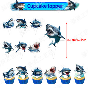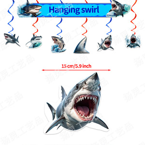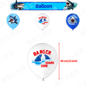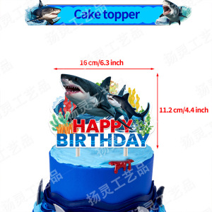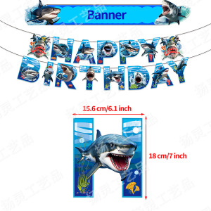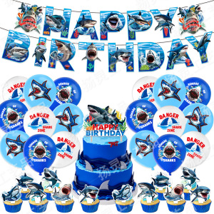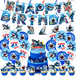 鲨鱼主题生日派对装饰 鲨鱼Shark生日拉旗蛋糕插气球吊旋派对布置