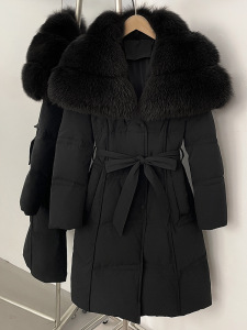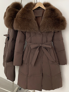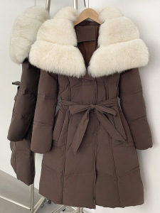 2025新款超大真狐狸毛领时尚洋气显瘦中长款大翻领白鸭绒羽绒服女