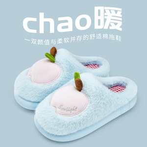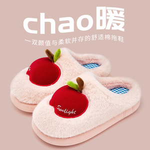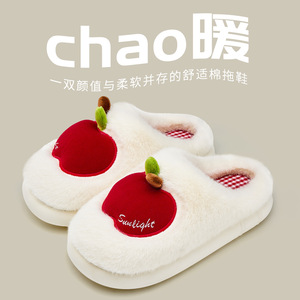 万圣节平安夜棉拖鞋女款冬季2025室内圣诞节苹果家居保暖毛毛拖鞋