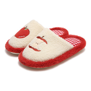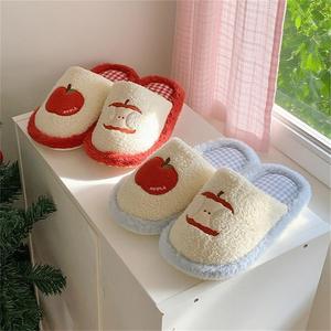 可爱红苹果少女心毛毛鞋居家地板月子鞋ins风卧室包头女冬棉拖鞋