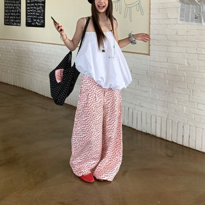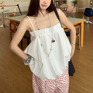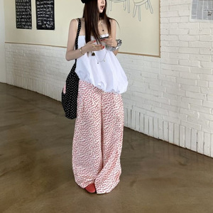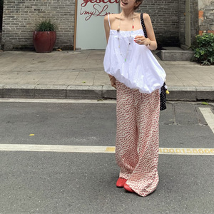 甜美风套装不规则白色花苞吊带背心女夏季碎花阔腿裤休闲裤两件套