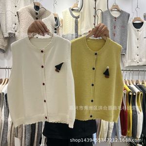日系无袖叠穿毛衣马甲开衫女2025秋季新款宽松单排扣圆领针织背心