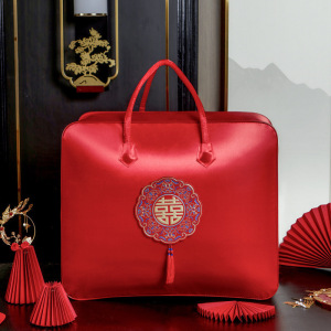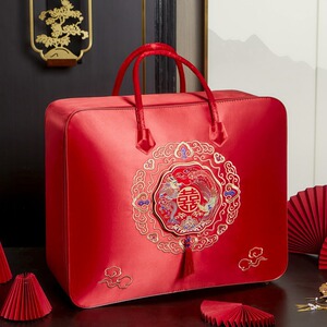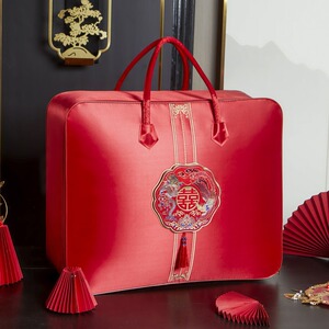 结婚陪嫁收纳袋婚庆四件套红色喜被装棉被的包装袋子缎面牛津手提