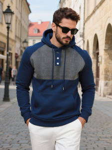 亚马逊秋冬跨境新款TEMU情侣装撞色拼接连帽卫衣时尚运动卫衣男