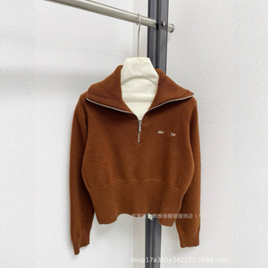 深圳南油高版本MM家5早秋新款微标拉链翻领长袖针织衫羊毛衣