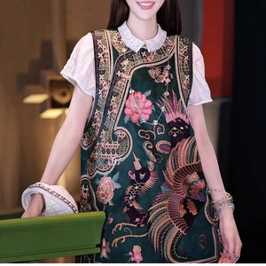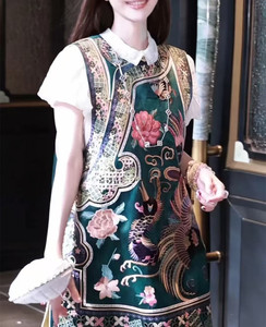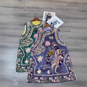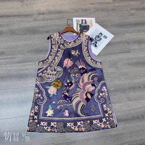 篙端提花肌理感醋酸国潮马甲裙里衬提花重工定位满绣做工精致马夹