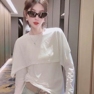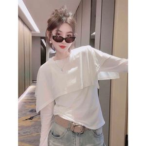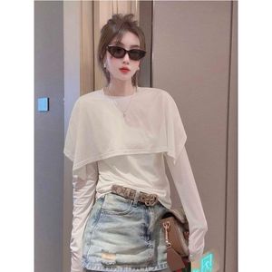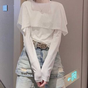 纯棉欧洲站夏季新款欧货斗篷拼接假两件设计感时尚显瘦防嗮T恤女