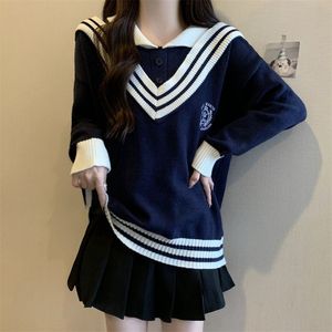 慵懒学院风毛衣女秋冬大码胖妹妹显瘦假两件Polo领针织打底衫上衣